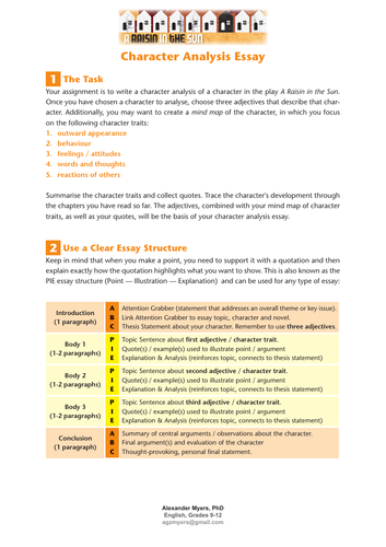 A Raisin In The Sun Character Analysis Guide Teaching Resources
